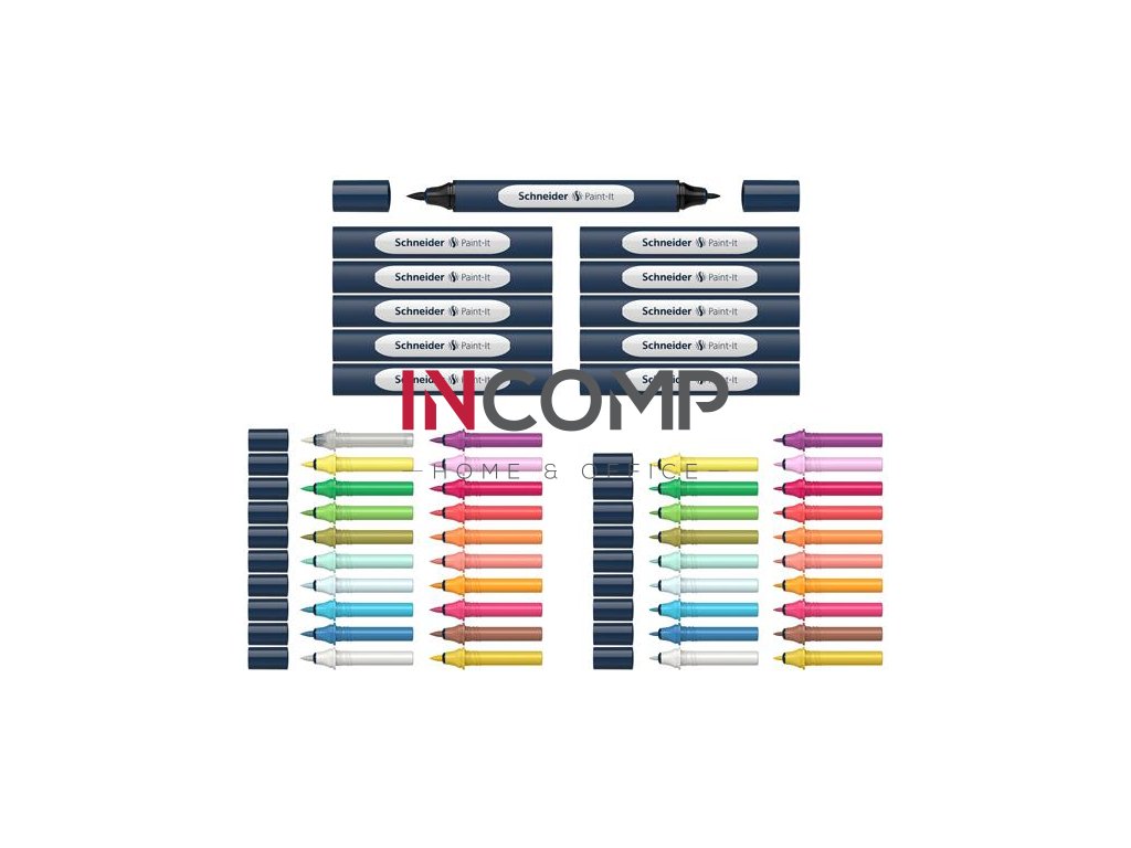 Popisovač, obojstranný, 52-kusová sada, SCHNEIDER „Paint-It 040 Twin marker Set 1”, 20 rôznych farieb