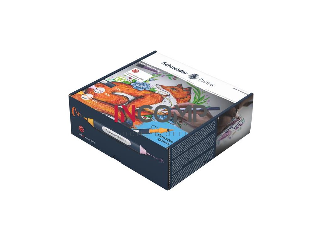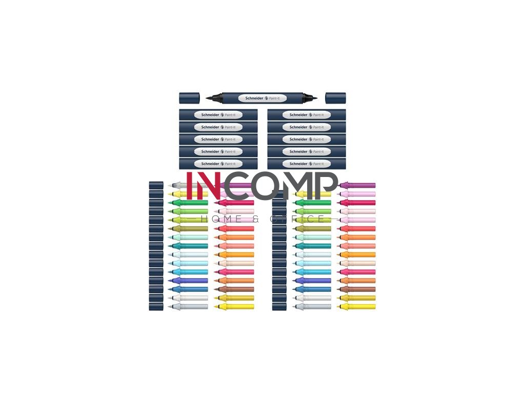 Popisovač, obojstranný, 72-kusová sada, SCHNEIDER „Paint-It 040 Twin marker Set complete”, 30 rôznych farieb