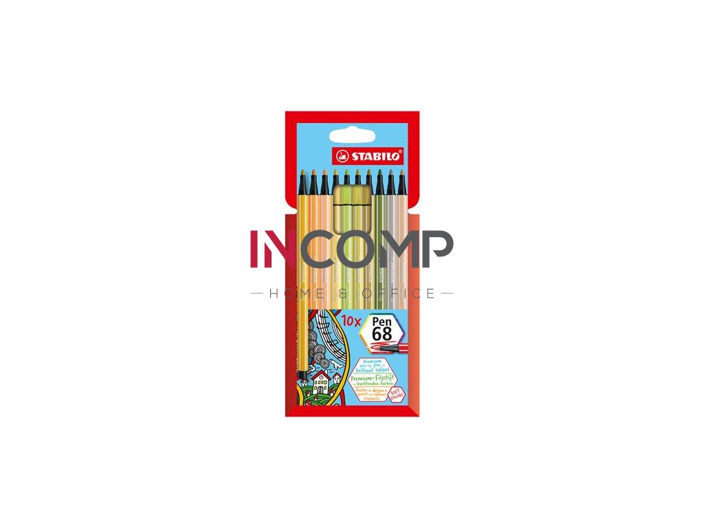 Popisovač, sada, 1 mm, STABILO "Pen 68", 10 rôznych farieb