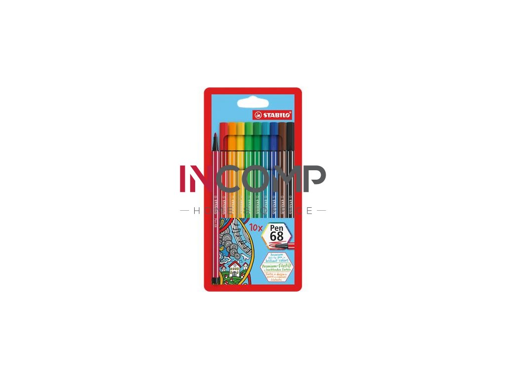Popisovač, sada, 1 mm, STABILO "Pen 68", 10 rôznych farieb