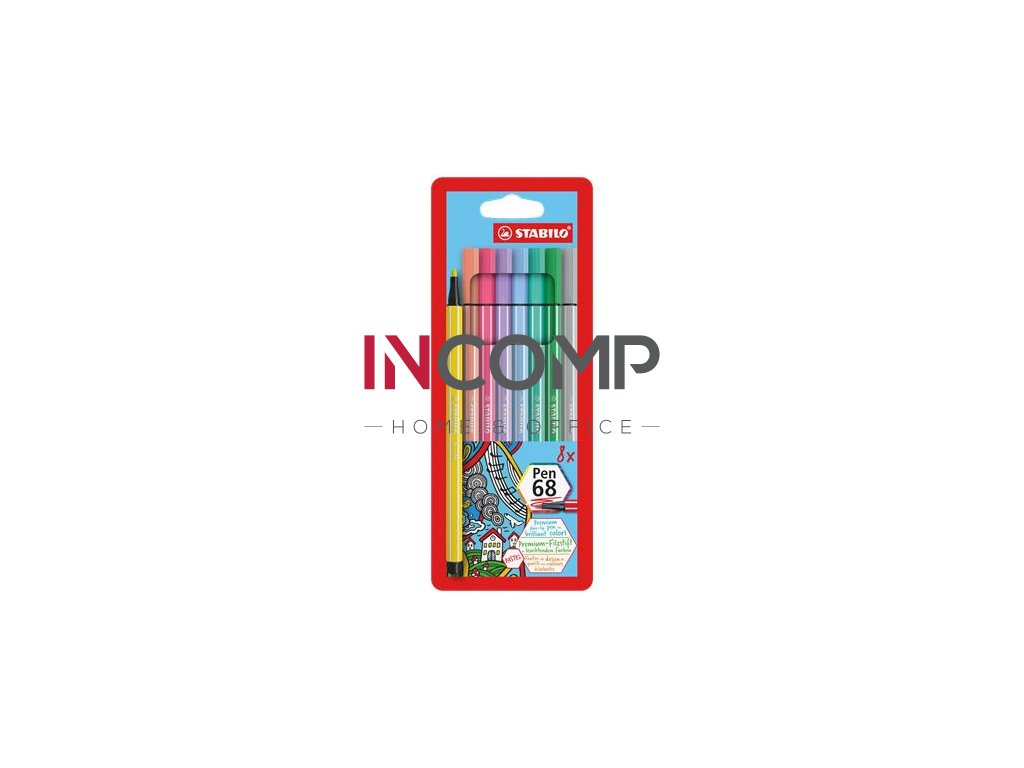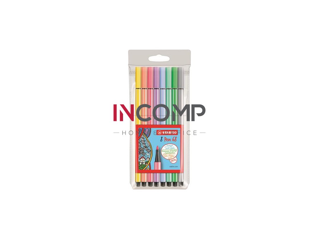 Popisovač, sada,1 mm, STABILO "Pen 68", 8 pastelových farieb