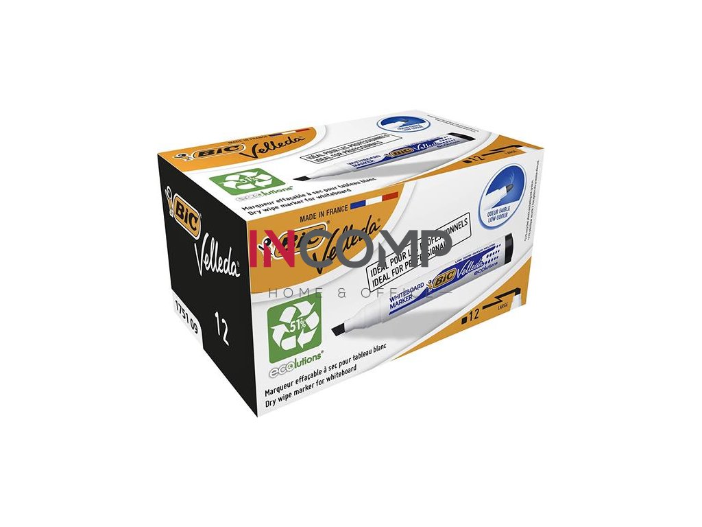 Popisovač na biele a flipchartové tabule, 1,1-5,6 mm, zrezaný hrot, BIC "Velleda ecolutions", čierny