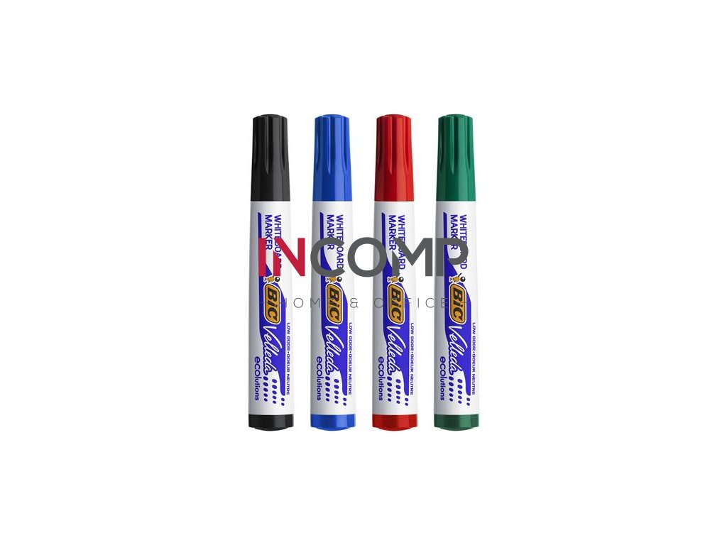 Popisovač na flipchart a tabuľu, 1,4 mm, kužeľový hrot, BIC "Velleda ecolutions", 4 rôzne farby