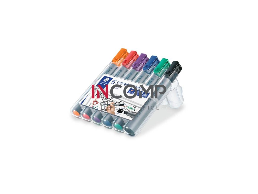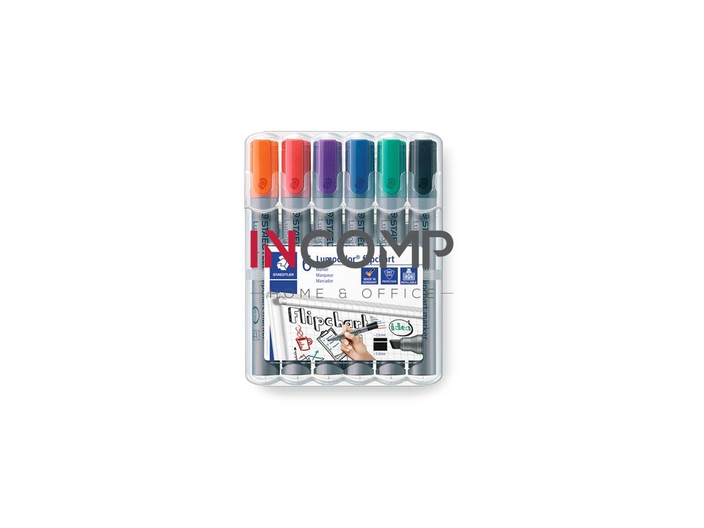 Popisovač na flipchartové tabule, 2-5 mm, zrezaný, STAEDTLER "Lumocolor 356 B", 6 rôznych farieb