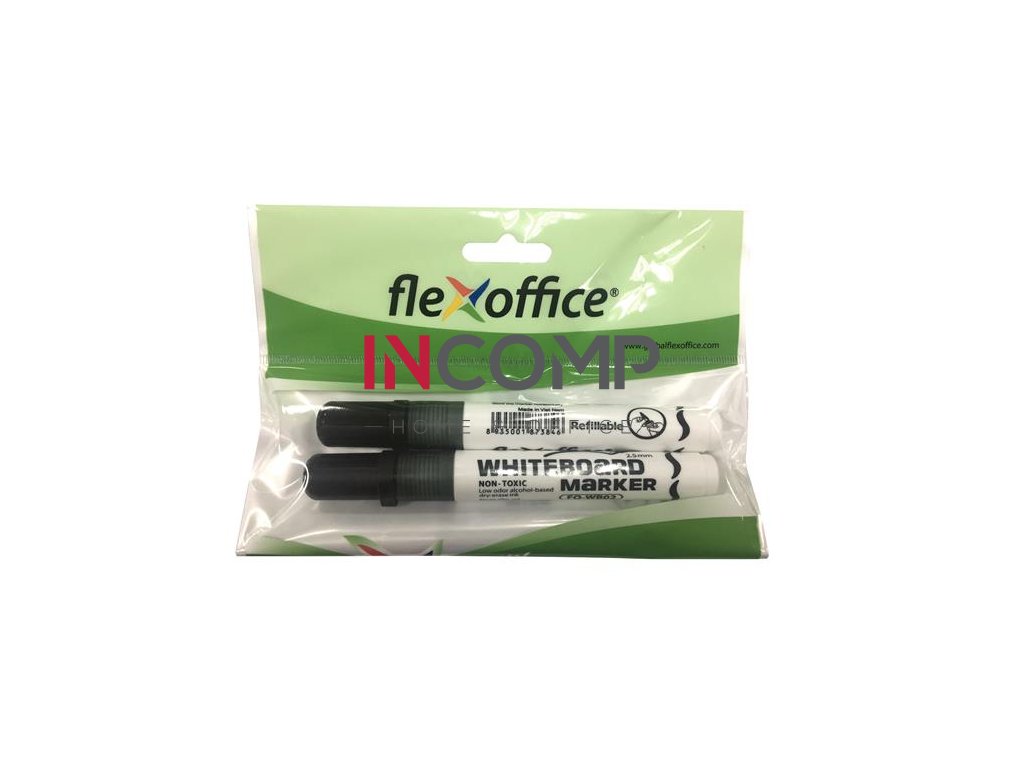 Popisovač na tabule, 2,5 mm, kužeľovitý, 2 ks/blister, FLEXOFFICE "WB02", čierna