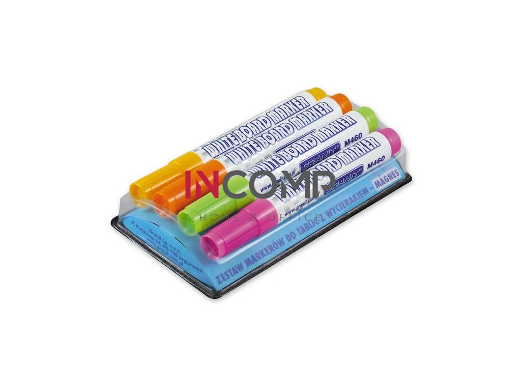 Popisovač na tabule, sada, 2-3 mm, kužeľový hrot, s magnetickým držiakom, GRANIT "M460", 4 rôzne farby