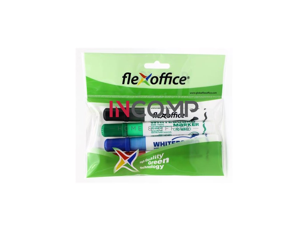 Popisovač na tabule, sada, 2,5 mm, kužeľovitý, sada, FLEXOFFICE "WB02", 4 farby
