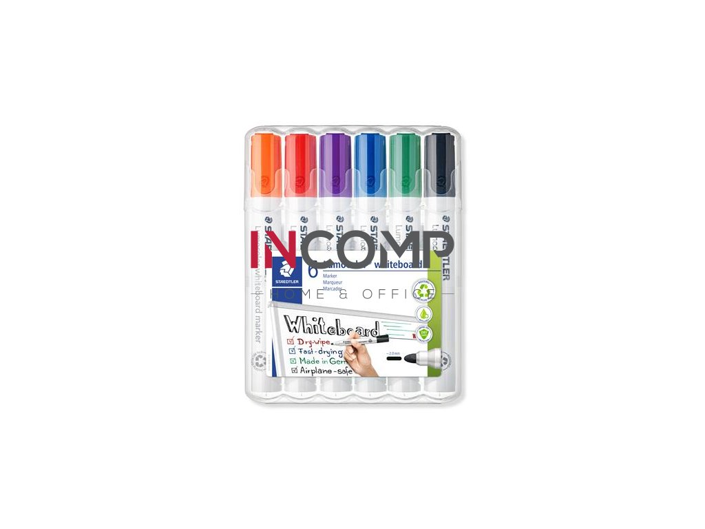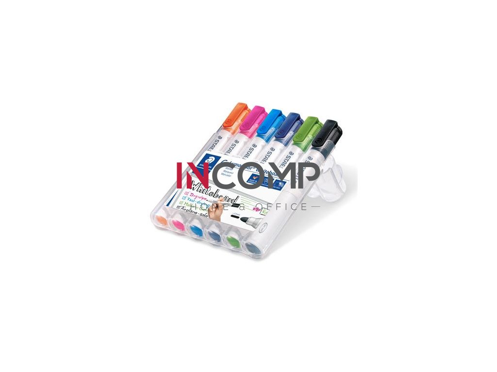 Popisovač na tabule, sada, 2mm, kužeľovitý, STAEDTLER "Lumocolor 351", 6 rôznych farieb