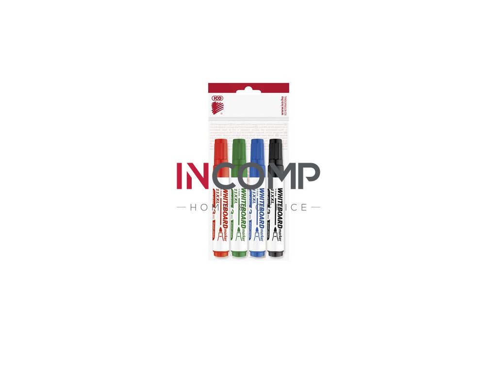 Popisovač na tabule a flipchartové tabule, sada, 1-3 mm, kužeľový hrot, ICO "Plan 11 XXL", 4 rôzne farby