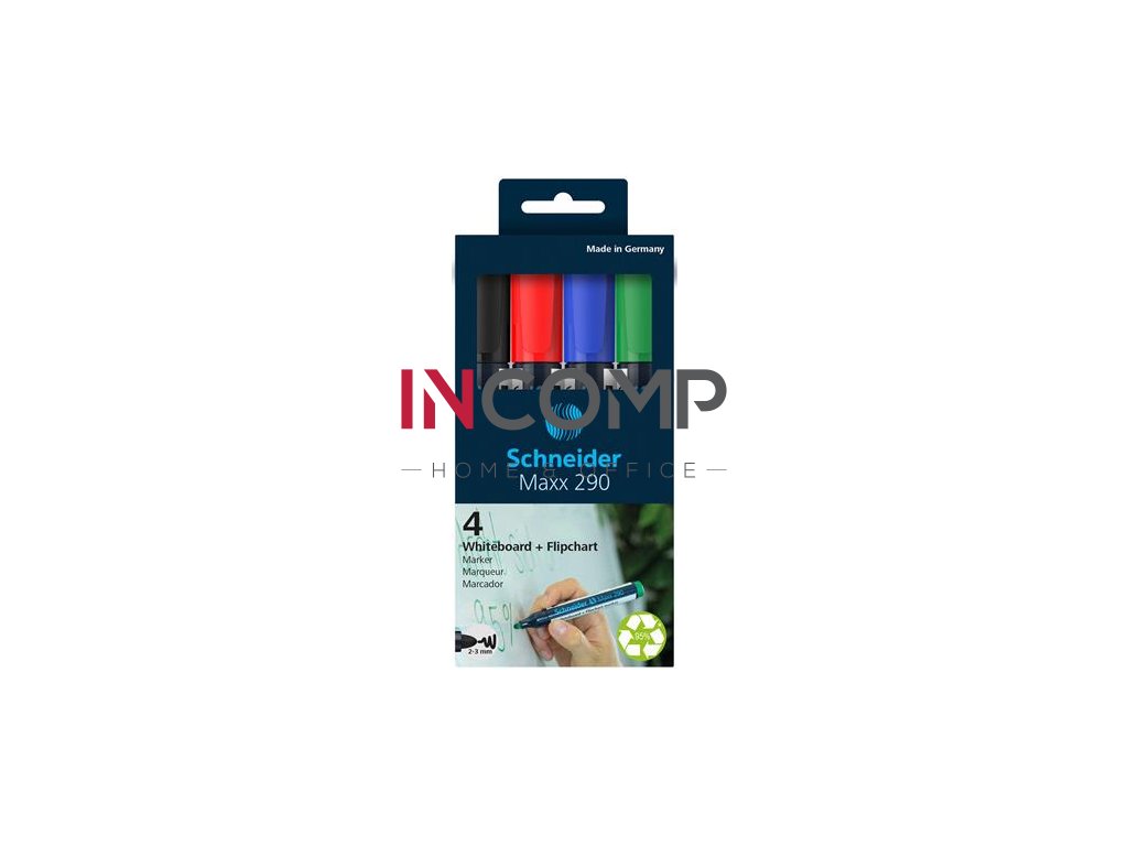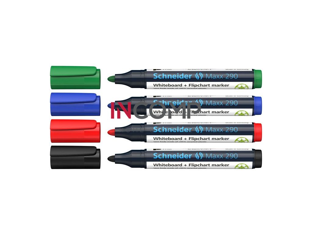 Popisovač na tabule a na flipchartové tabule, sada, 2-3 mm, kužeľový hrot, SCHNEIDER "Maxx 290", 4 rôzne farby