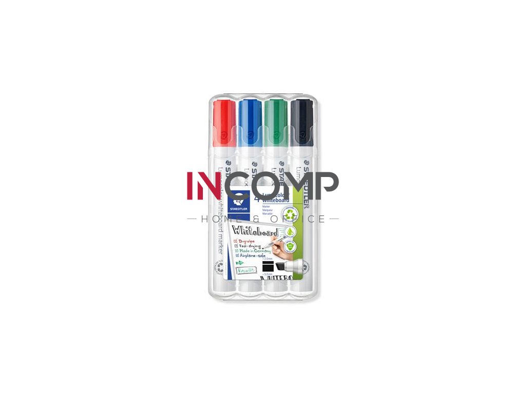 Popisovače na tabule a flipchartové tabule, sada, zrezaný hrot, STAEDTLER "Lumocolor 351 B", 4 rôzne farby