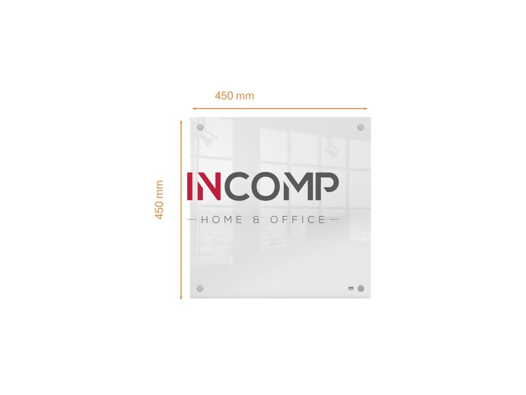 Mini tabuľa s moderným, bezrámovým dizajnom, pre domáce a kancelárske použitie, na písanie poznámok, zapisovanie myšlienok, nápadov alebo dôležitých dátumov. Cez rohy sa dá namontovať na stenu a vďaka priehľadnému dizajnu nepozorovane zapadne do okolia, keď sa nepoužíva. Ľahko čistiteľný povrch; stačí naň napísať a zmazať. - dá sa nasucho stierať - príslušenstvo: 1 popisovač na tabule - rozmer: 450x450 mm - možno inštalovať vertikálne alebo horizontálne - záruka 1 rok na povrch