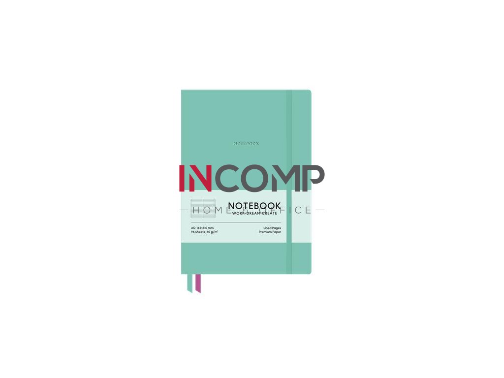 - formát A5 - uzatvárateľný na gumičku - textilná záložka v dvoch farbách - 96 listov - linajkový - papier krémovej farby - 80 g/m2