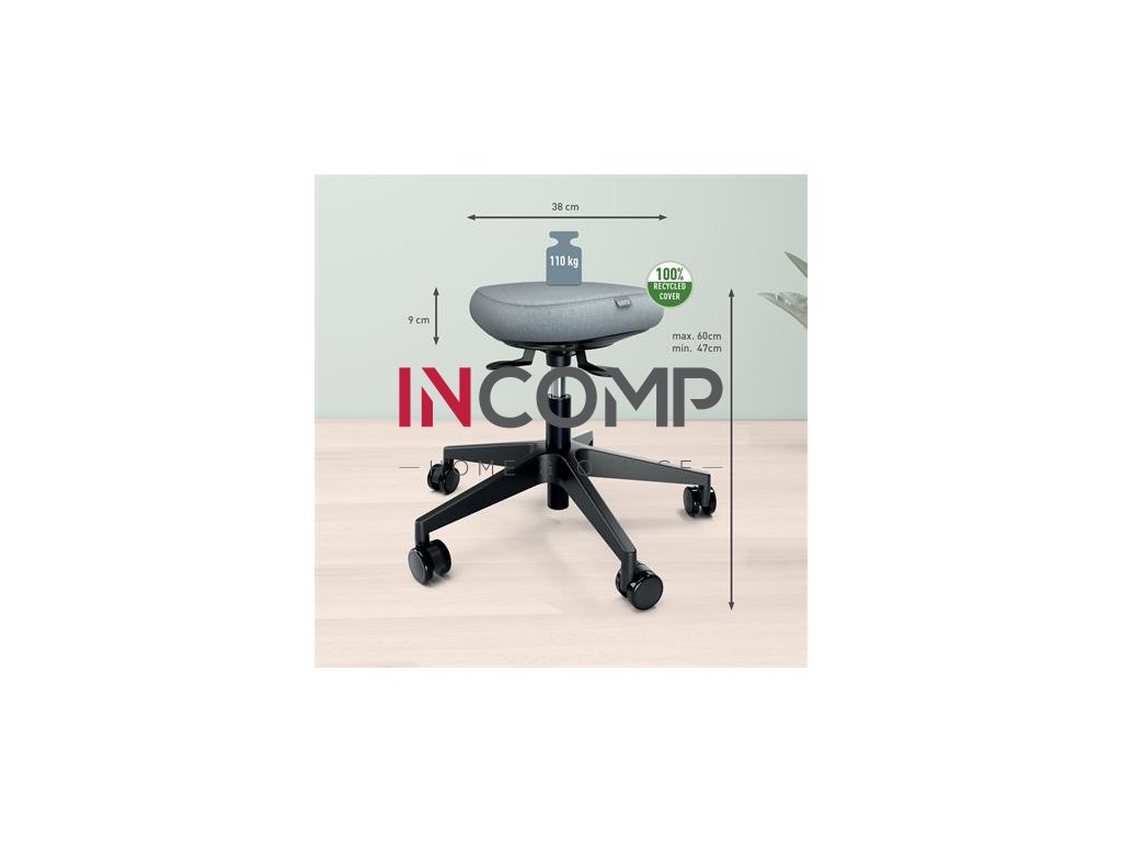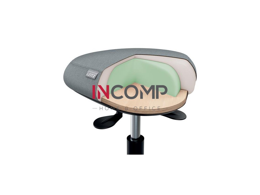 Trojuholníkový tvar sedadla, podobný sedlovým stoličkám, rovnomerne rozkladá hmotnosť na panvové kosti. Mäkké penové čalúnenie znižuje tlak na stehná a nohy celkovo.