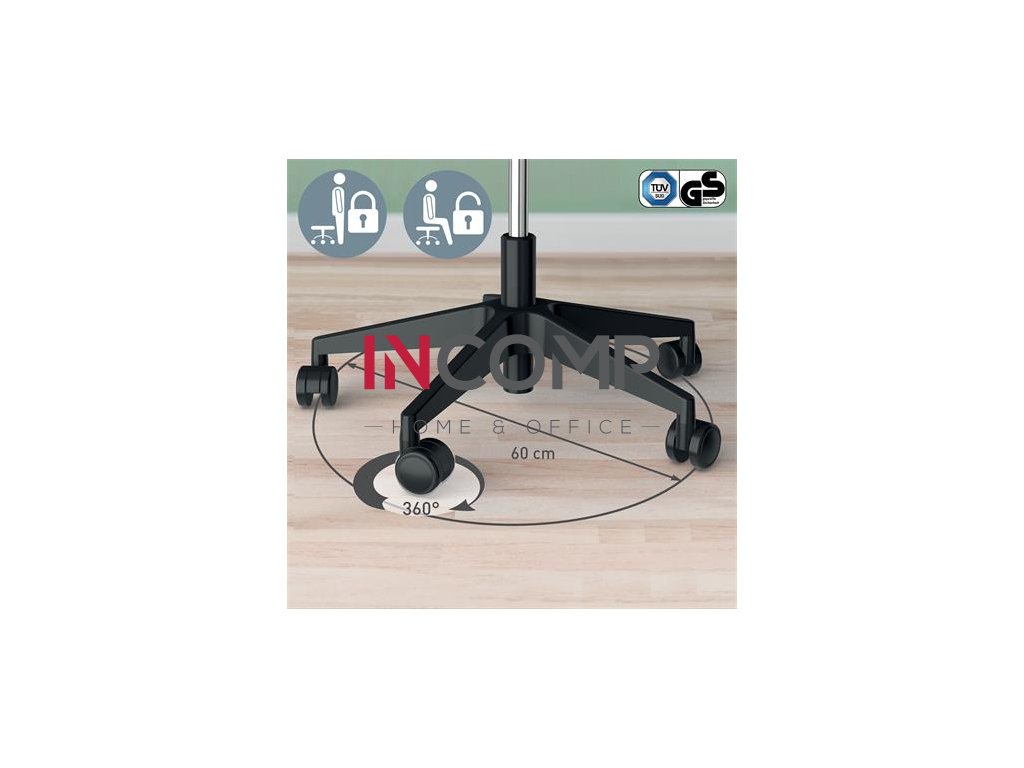 Ľahká a mobilná stolička s 5 kolieskami pre jednoduché otáčanie o 360 stupňov. Kolieska sú navrhnuté s ohľadom na bezpečnosť, pri zdvihnutí sa zo stoličky sa zamknú, pri sedení odomknú, zabránia tak nechcenému pohybu. Sú vhodné pre všetky typy podláh v kancelárii aj doma.