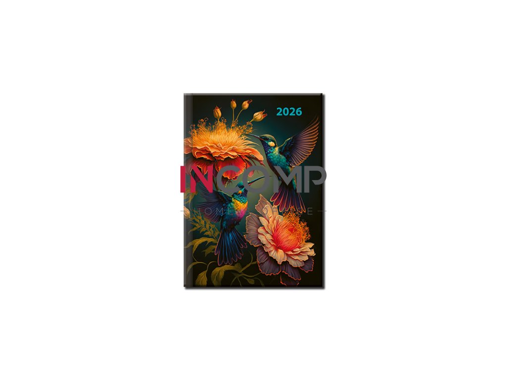 Jedinečný, praktický a spratný denný diár s motívom KOLIBRÍKY. Malý rozmer a množstvo miesta pre poznámky a termíny. Povrchová úprava - lamino, holografická fólia. Vhodný ako darček.