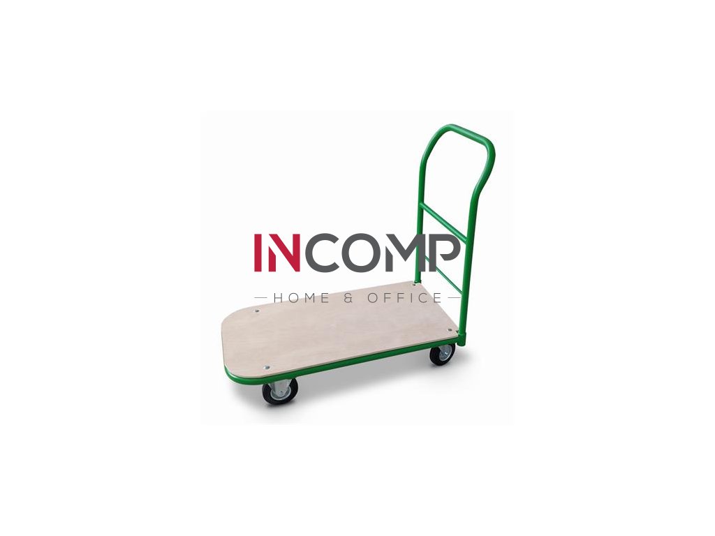 stabilná, zváraná oceľ, úložná plocha z 12 mm hrubej masívnej drevotriesky (buk), rozmery plochy: 850 x 550 mm, nosnosť: 200 kg, výška prepravného vozíka s rúčkou: 910 mm, priemer koliesok: 125 mm