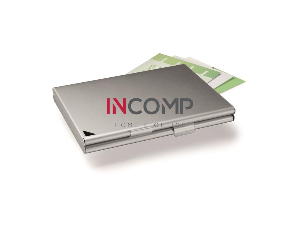 Elegantné hliníkové puzdro na vizitky s matným strieborným povrchom.