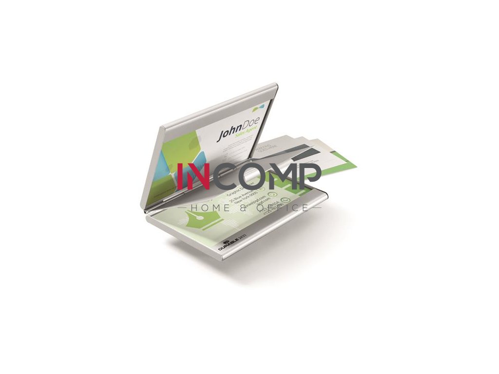 Puzdro na vizitky, kovové, 20-kusové, DURABLE "CARD BOX DUO", strieborná