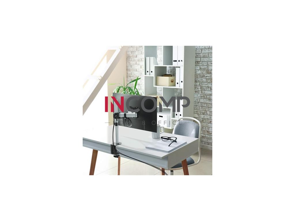 Držiak monitora pre 1 obrazovku, s jedinečnou možnosťou montáže, pomocou skrutky a stolovej svorky - výšku, uhol sklonu a polohu monitora možno jednoducho a individuálne nastaviť, čím napomáha ergonomickej práci - možno ho jednoducho otáčať o 360°, takže monitor môžete pohodlne používať aj v režime na výšku alebo na šírku - rameno možno vysunúť až na 43 cm a otočiť až o 180° pomocou troch pántov - plynule nastaviteľnú výšku na 45 cm vysokom stĺpe - s univerzálnym VESA štandardná veľkosť (75 x 75 mm alebo 100 x 100 mm) - veľkosť 27" a 8 kg - pre štandardné monitory do