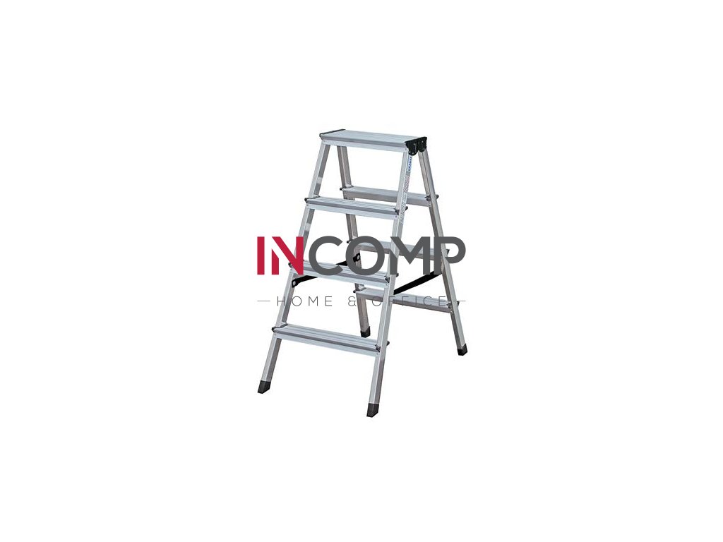 Ľahký hliníkový rebrík, po ktorom sa dá chodiť obojstranne až do pracovnej výšky 3,30 m (8 stupňová verzia).