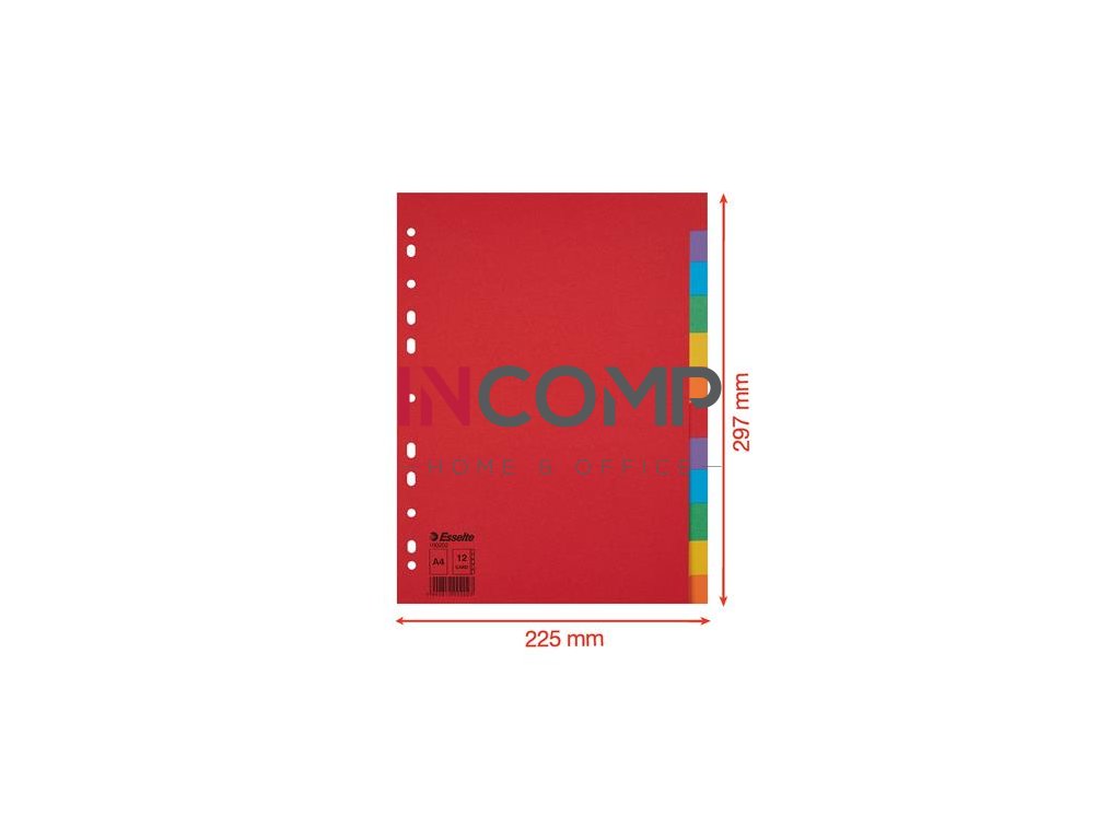 Register, kartónový, A4, 12 dielny, ESSELTE "Economy", farebný