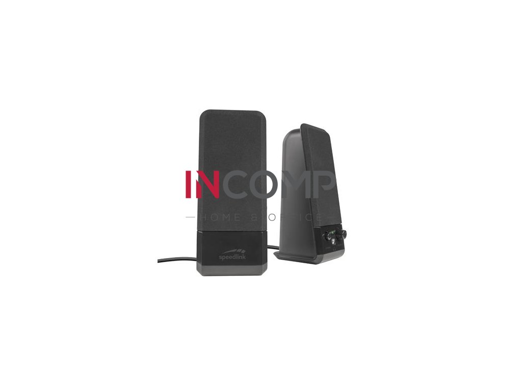 Dvojica USB reproduktorov značky Speedlink sa hodí na každý písací stôl. Úzky tvar nezaberie miesto a zachováva si špičkovú stabilitu spojenú s moderným dizajnom. Okrem regulácie hlasitosti a vypínania v jednom tlačidle je samozrejmosťou tiež 3,5 mm výstup pre slúchadlá. Hlasitosť v slúchadlách je možné ovládať priamo na reproduktore.