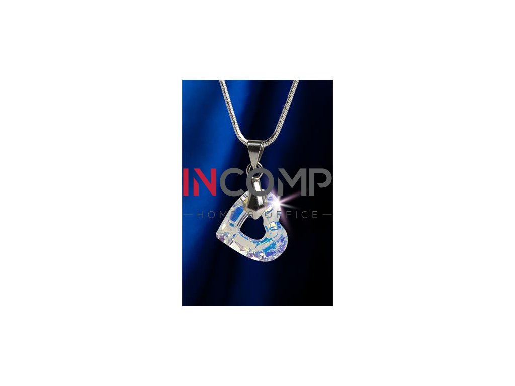 Retiazka, prívesok v tvare srdiečka, s bielym opálovým krištáľom SWAROVSKI®, 17 mm, ART CRYSTELLA®