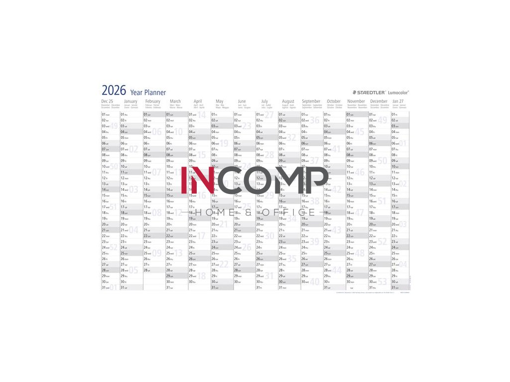 Ročný plánovač, stierateľný, v anglickom jazyku, 84x60 cm, STAEDTLER "Lumocolor® 641 YP", 2026