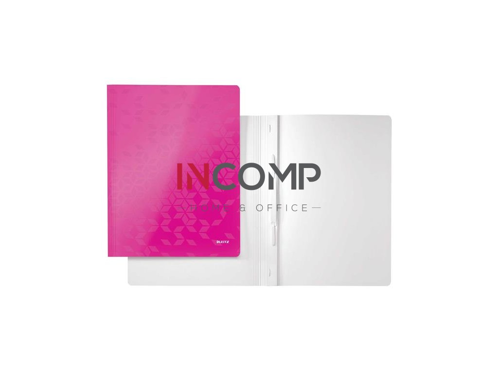 Rýchloviazač, laminovaný kartón, A4, LEITZ "Wow", ružová