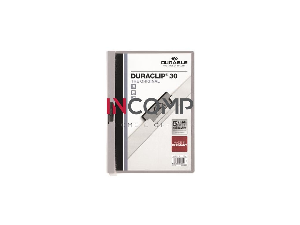 Rýchloviazač, s klipom, A4, DURABLE "DURACLIP® 30", sivá