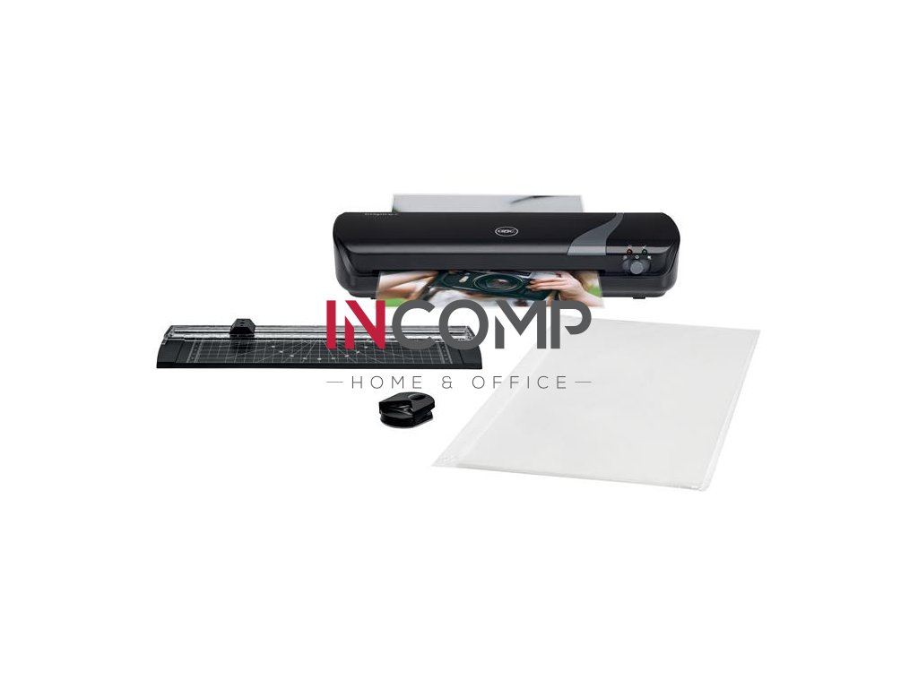 Súčasťou balenia je štartovací balíček piatich laminovacích fólií A4 (2 × 75 mikrónov)