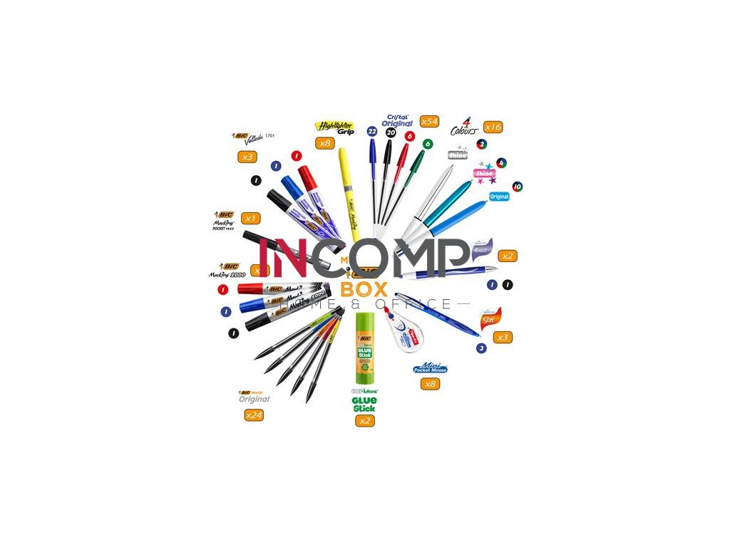 Neprehliadnuteľná ponuka! Sada obsahuje: -1x BIC "Atlantis Exact" guľôčkové pero, čierne -2x BIC "Eco Glustic" lepidlo, 21 g -1x BIC "ECO 2000" permanentný popisovač, modrý (BC8209143) -10x BIC "Medium" 4-farebné guľôčkové perá - 22x BIC "Crystal" guľôčkové pero, modré -1x BIC "Velleda" popisovač na tabuľu, modré -8x BIC "Grip" zvýrazňovač, žlté -1x "Velleda" popisovač na tabuľu, čierne -20x BIC "Crystal" guľôčkové pero, čierne -1x BIC "ECO 2000" permanentný popisovač, čierny (BC8209153) -6x BIC "Crystal" guľôčkové pero, zelené -1x BIC "1445 ECO" popisovač, čierny -3x BIC "Atlantis Clic" guľôčkové pero, modré -1x BIC "Atlantis Exact" guľôčkové pero, modré -1x BIC "ECO 2000" permanentný popisovač, červený (BC8209133) -24x BIC "Matic" mechanická ceruzka 0,7 mm -4x BIC "Grip Medium" 4-farebné guľôčkové pero -1x BIC "Velleda" popisovač na tabuľu , červená -8x TIPP-EX korekčný roller - 6x BIC "Crystal" guľôčkové pero, červená - 2x BIC "Shine Medium" 4-farebné guľôčkové pero