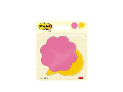 Samolepiaci bloček, v tvare kvetu/bubliny s textom, 72,5x72,5 mm, 60 listov, 3M POST-IT, ružová-žltá