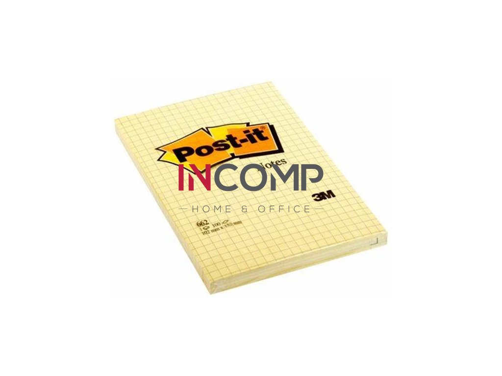 Samolepiaci bloček, 102x152 mm, 100 listov, štvorčekový, 3M POSTIT, žltý