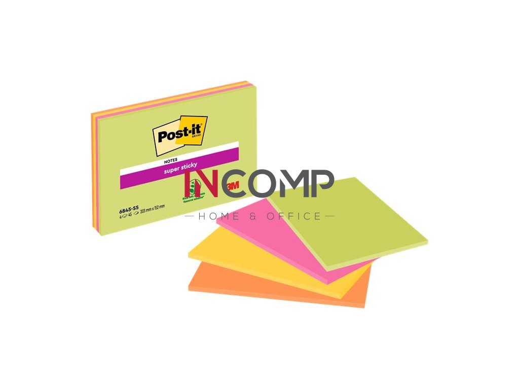 Samolepiaci bloček, 203x152 mm, 4x45 listov, 3M POSTIT "Super Sticky", mix farieb