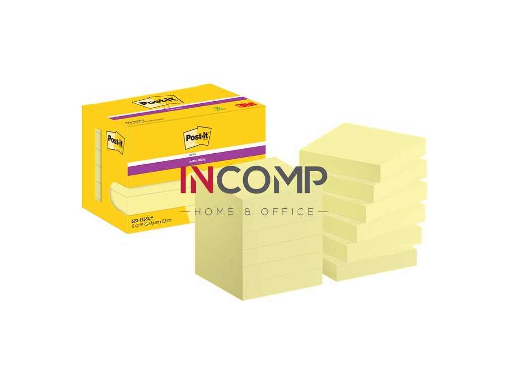 Samolepiaci bloček, 48x48 mm, 12x90 listov, 3M POSTIT "Super Sticky", žltý