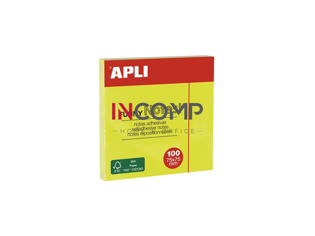 Samolepiaci bloček, 75x75 mm, 100 listov, APLI, neónový žltý