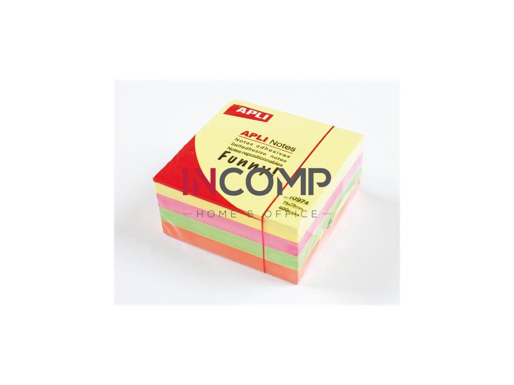Samolepiaci bloček, 75x75 mm, 400 listov, APLI, neónový
