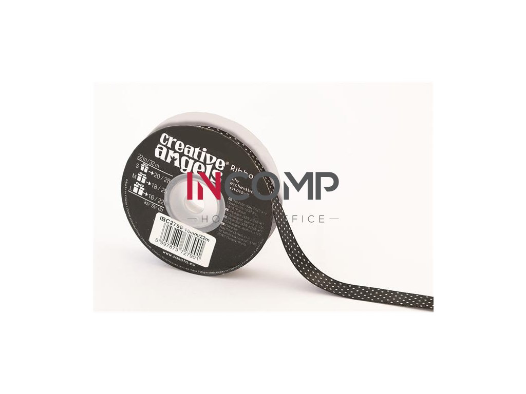 Saténová stuha, 15 mm x 22 m, čierna s bielymi bodkami