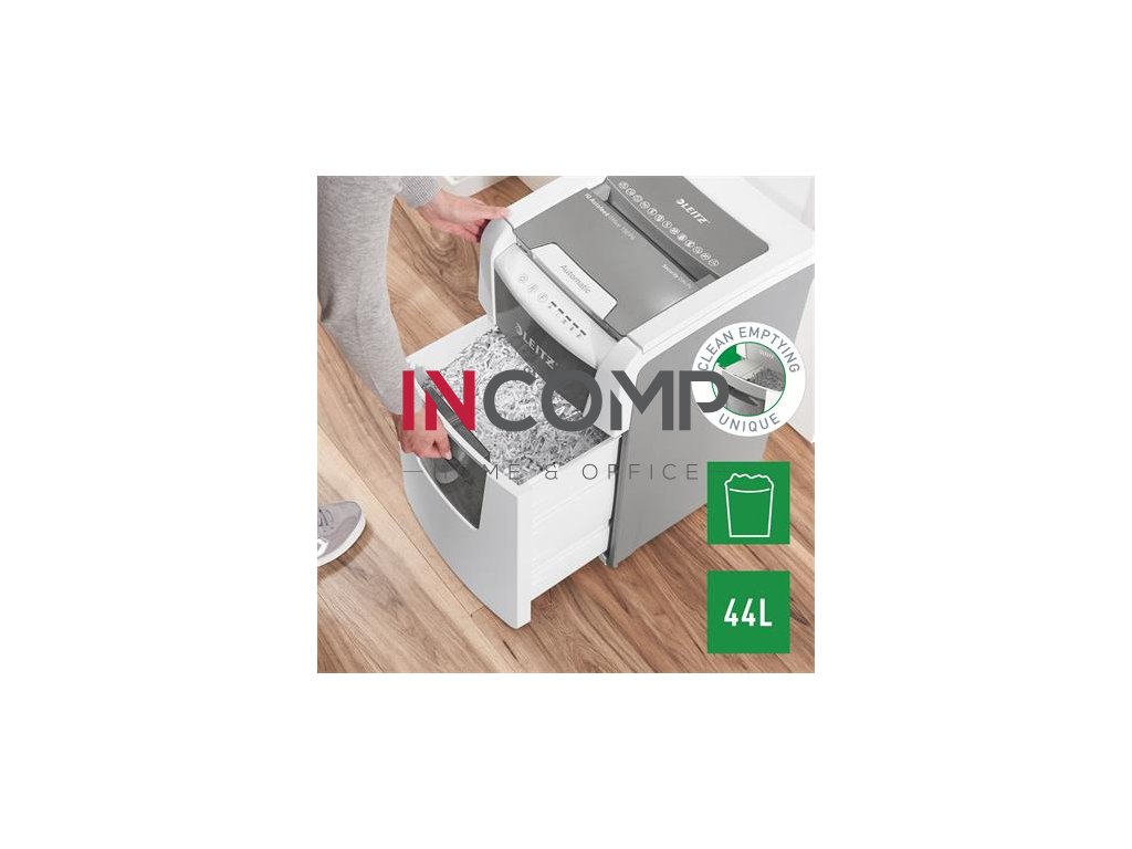 - Jedinečná funkcia čistého vyprázdňovania (rezačka sa otáča po každom použití), ktorá zabráni tomu, aby papierový odpad počas vyprázdňovania padal za odpadovú nádobu.
