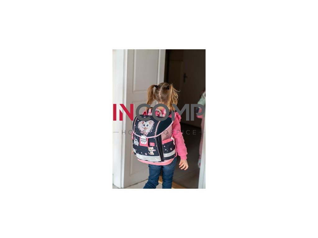 Školské tašky pre kreativitu, hravosť a jedinečnosť - 2 vnútorné priehradky (vhodné pre knihy veľkosti A4) + 1 odkladací priestor na rozvrh hodín + 2 bočné priehradky (na dáždnik + 0,7 litrová fľaša) - nastaviteľné predné vrecko na držiak pera - ergonomický tvar - priedušný polstrovaný chrbát - polstrované ramenné popruhy v tvare S, nastaviteľný hrudný a bedrový pás -jednoduché otváranie vďaka kovovej pracke, s reflexnými prvkami -nastaviteľný hrudný popruh pre optimálne rozloženie hmotnosti -AGR certifikát -materiál: vodeodolný polyester -rozmer: 36x28x19 cm -váha: 0,80- 0,86 kg -odporúčané pre 6-8 ročné deti -odporúčané od výšky 110 cm -2 roky záruka