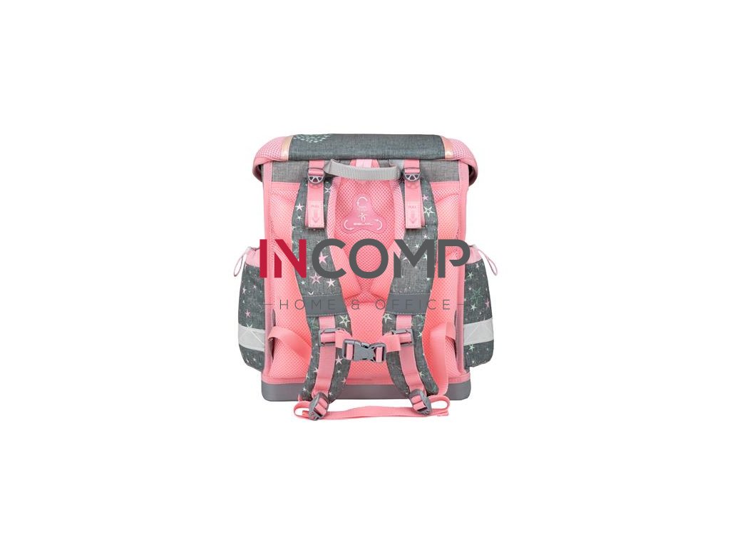 3 vnútorné priehradky (vhodné pre knihy formátu A4) + 1 priehradka na rozvrh + 2 bočné vrecká (na dáždnik a fľašu s objemom 0,7 litra)