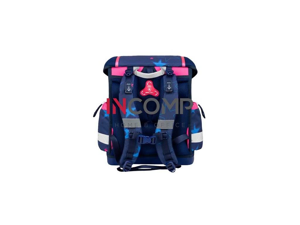3 vnútorné priehradky (vhodné pre knihy formátu A4) + 1 priehradka na rozvrh + 2 bočné vrecká (na dáždnik a fľašu s objemom 0,7 litra)