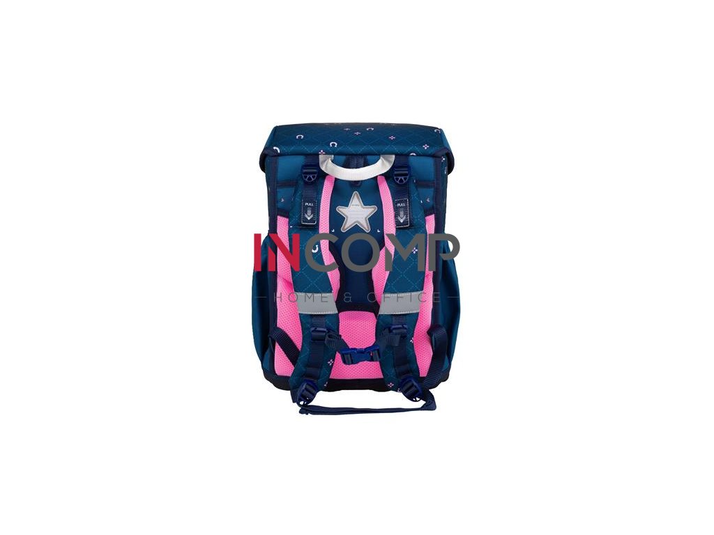 2 vnútorné priehradky (vhodné pre knihy formátu A4) + 2 bočné vrecká (na dáždnik a fľašu s objemom 0,7 litra) + 1 priehradka na desiatu