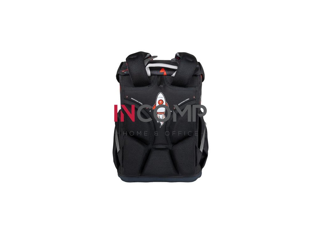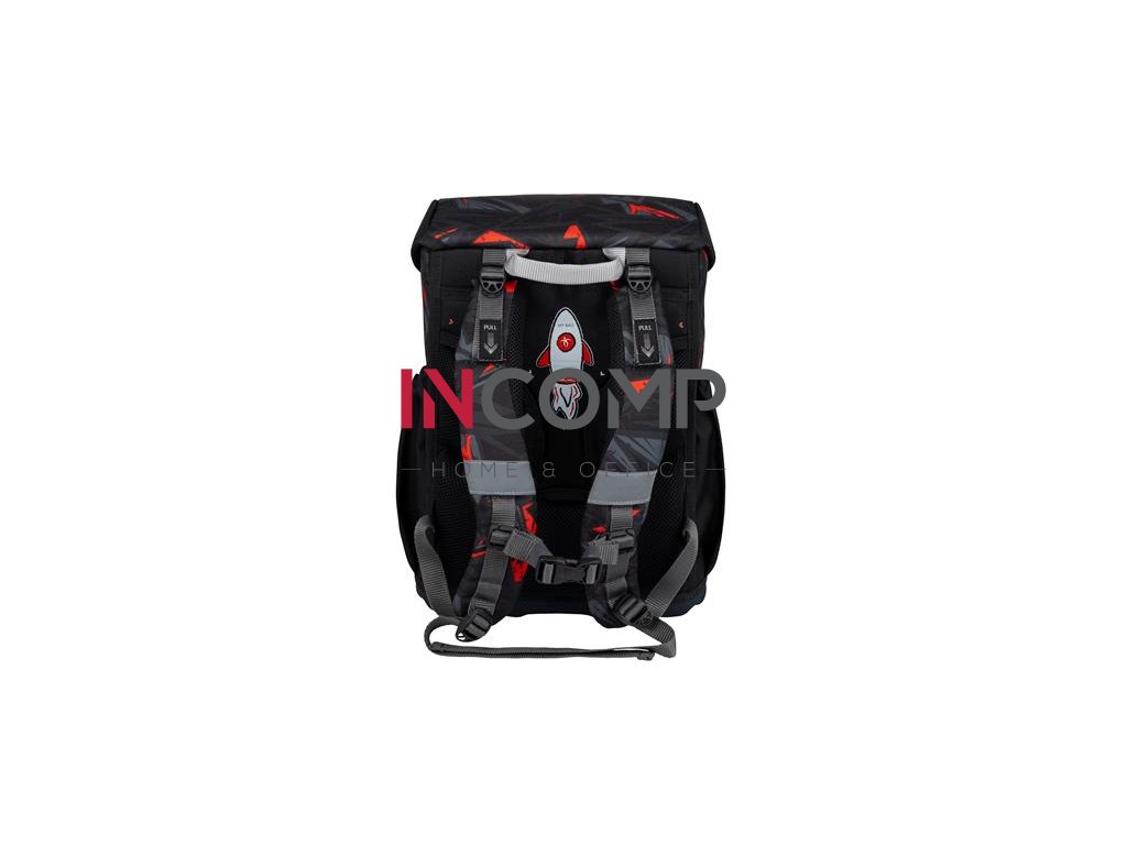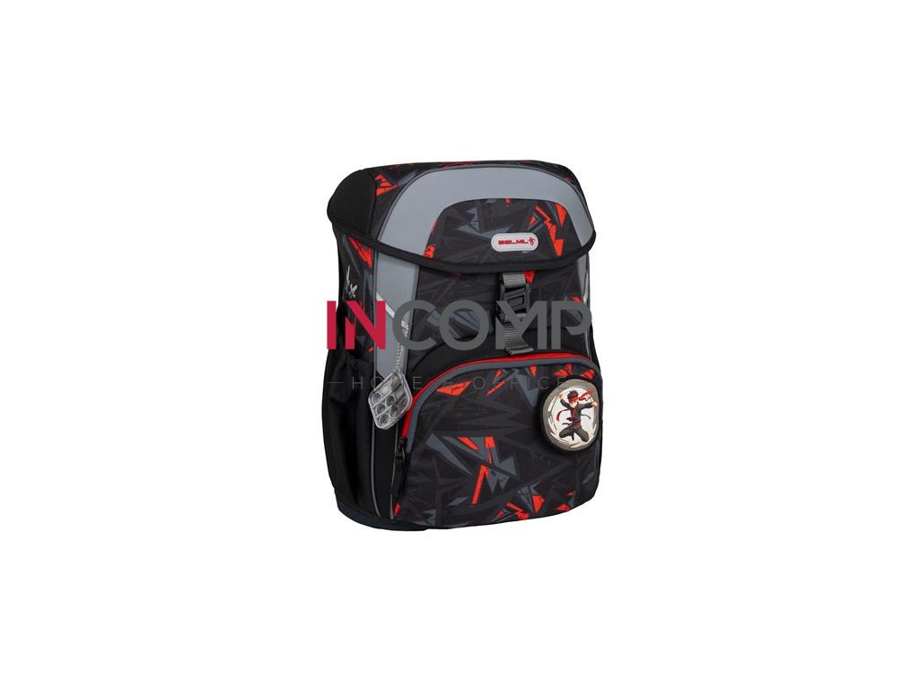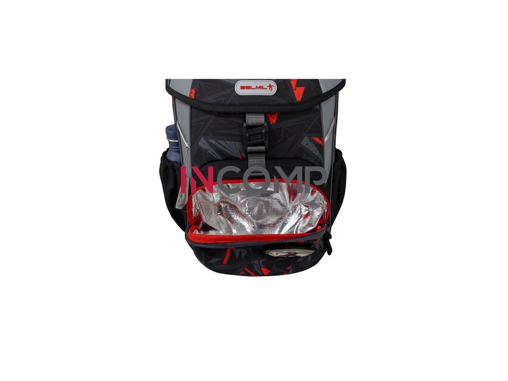 2 vnútorné priehradky (vhodné pre knihy formátu A4) + 2 bočné vrecká (na dáždnik a fľašu s objemom 0,7 litra) + 1 priehradka na desiatu