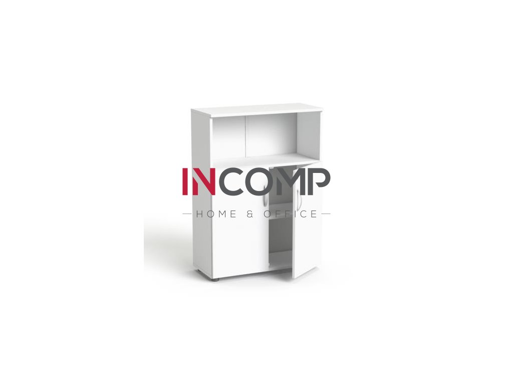 Kombinovaná skriňa, výška na 3 zakladače, s dverovou a otvorenou policovou časťou.