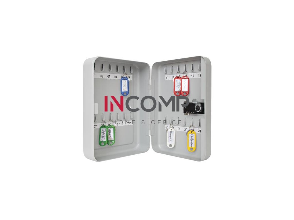 - oceľová skrinka s mechanickým zámkom na číselný kód, kapacita: 24 kľúčov