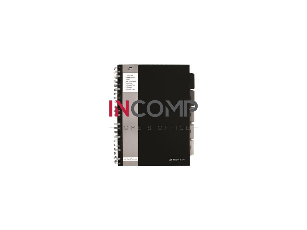 Špirálový zošit, A4, linajkový, 125 strán, PUKKA PAD "Black project book", čierna