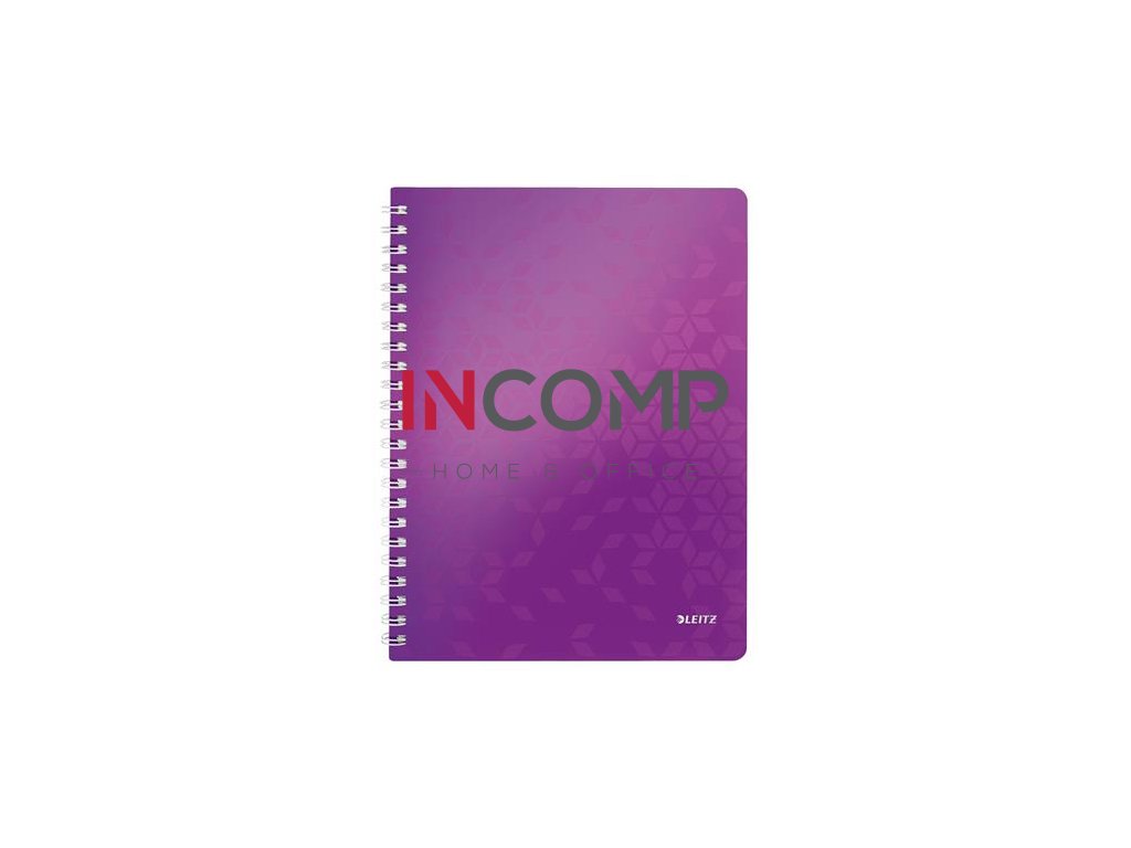 Špirálový zošit, A4, linajkový, 80 listov, LEITZ "Wow", fialový